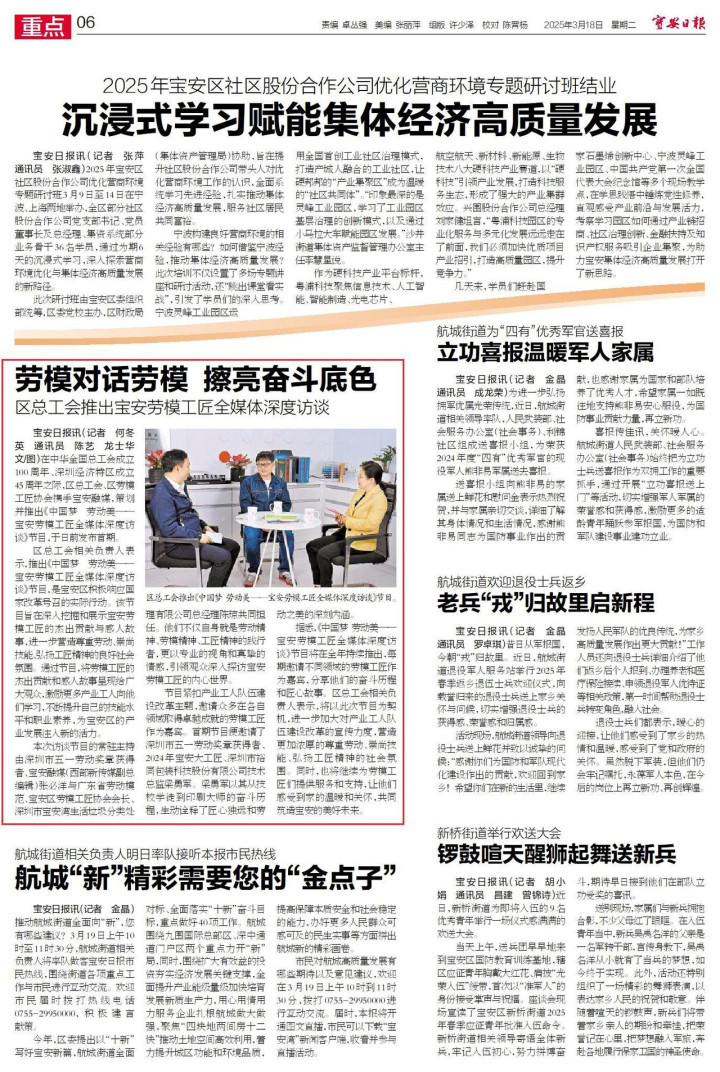 区总工会相关负责人表示,推出《中国梦劳动美——宝安劳模工匠全媒体深度访谈》节目,是宝安区积极响应国家改革号召的实际行动。该节目旨在深入挖掘和展示宝安劳模工匠的杰出贡献与感人故事,进一步营造尊重劳动、崇尚技能、弘扬工匠精神的良好社会氛围。通过节目,将劳模工匠的杰出贡献和感人故事呈现给广大观众,激励更多产业工人向他们学习,不断提升自己的技能水平和职业素养,为宝安区的产业发展注入新的活力。
